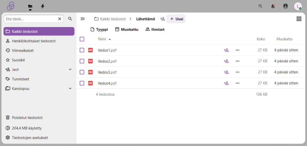 Halutessasi siirtää painoaineistoa tai osoitedataa meille, ota yhteyttä asiakaspalveluumme asiakaspalvelu@lahettamo.fi. Saat meiltä linkin, minkä kautta voit turvallisesti siirtää aineistosi meille sekä vastaanottaa meiltä vedokset hyväksyttäväksi.
